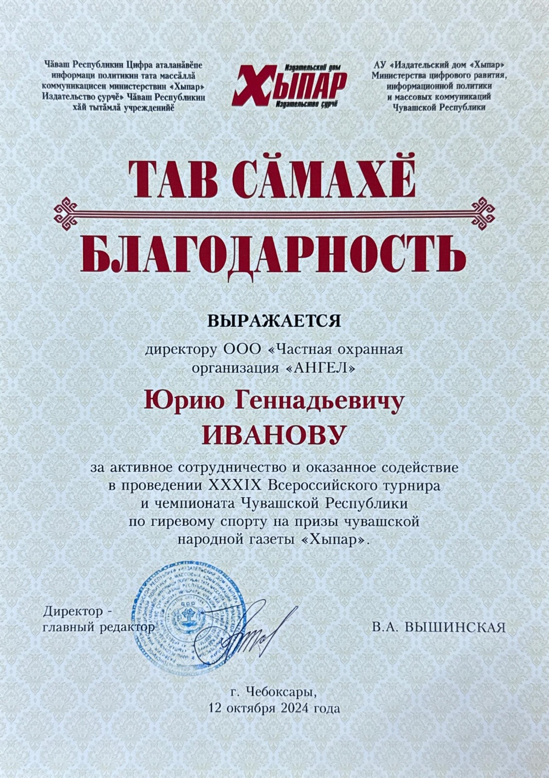 За время своей деятельности ООО «ЧОО «АНГЕЛ» много раз поощрялся клиентами и правоохранительными органами благодарственными и рекомендательными письмами.