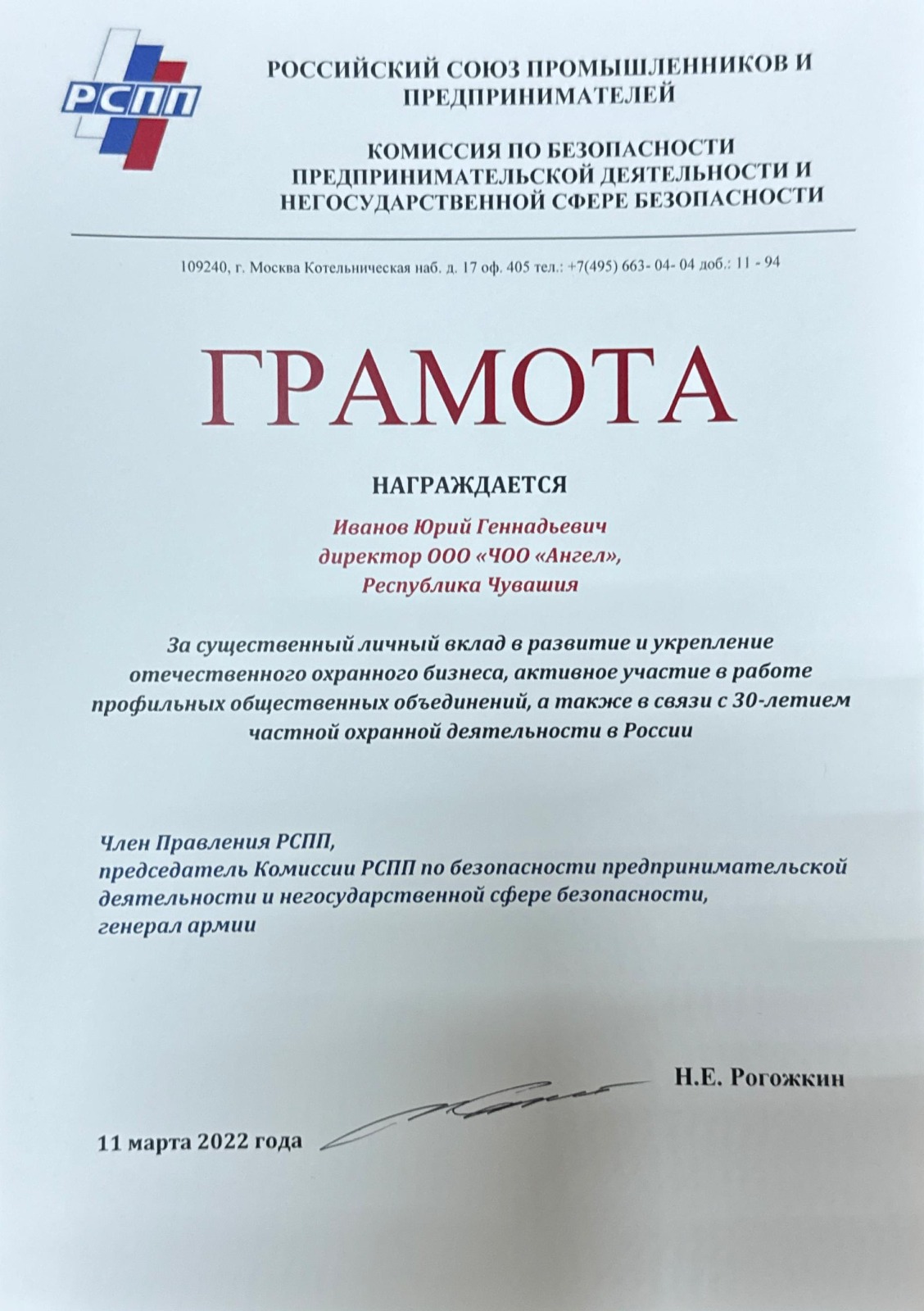 За время своей деятельности ООО «ЧОО «АНГЕЛ» много раз поощрялся клиентами и правоохранительными органами благодарственными и рекомендательными письмами.
